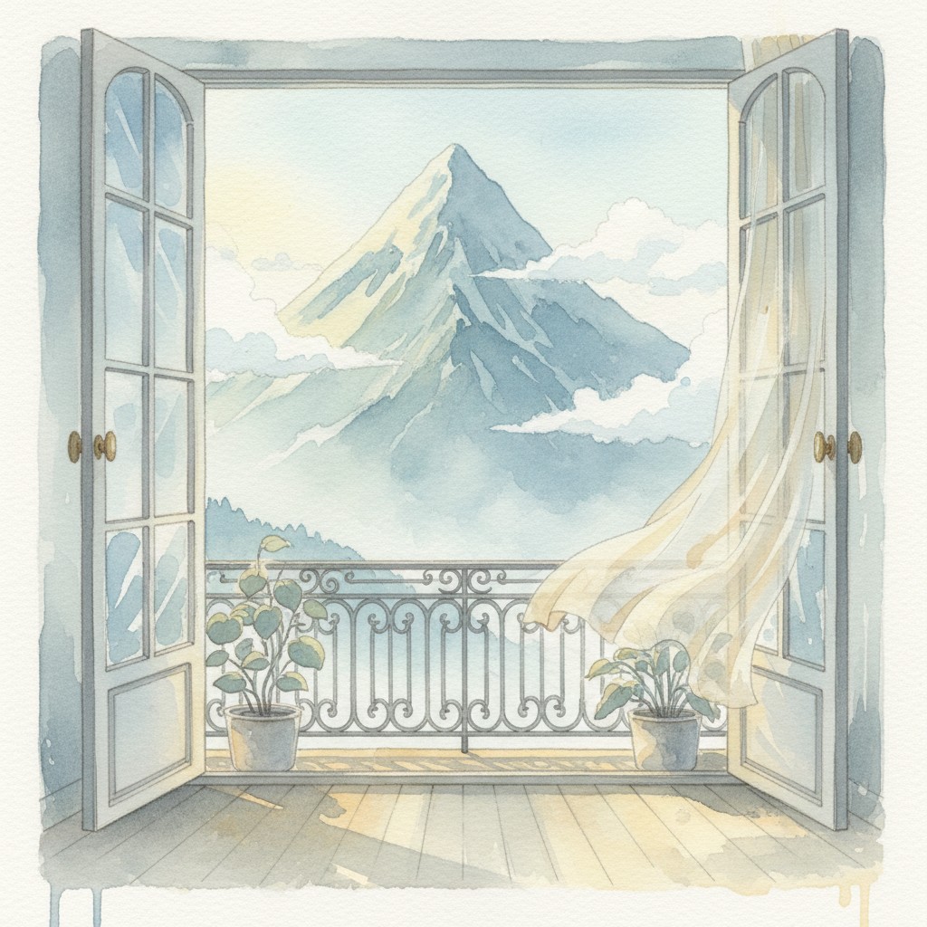 Mountain and French Window